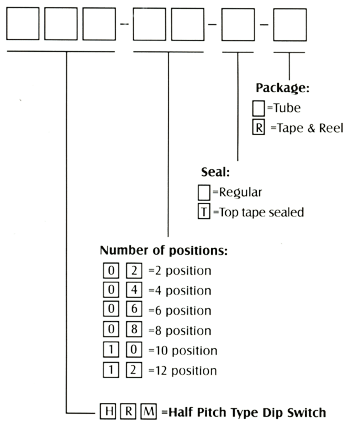 All DIP switches are shipped in standard IC tubes or Tape & Reel Package with all poles in the "OFF"