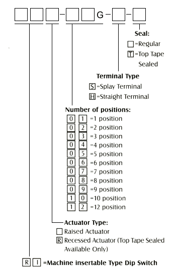 All DIP switches are shipped in standard IC tubes with all poles in "OFF" position. |